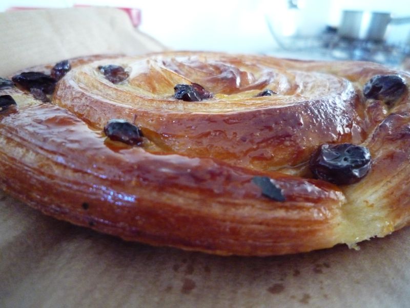 søndag, 29. marts 2009Mmmm, jeg elsker franske snegle. Jeg skulle bare lige ind og købe rugbrød i bageren, og så lå denne smukke snegl og gjorde sig til. Denne særlige variant af snegle er ellers svær at opdrive i danske bagere. Tror dejen er almindelig wienerbrødsdej, men så gemmer der sig saftige rosiner under et blankt lag glasering. Sneglen er både perfekt sprød og blød. Sød og en smule syrlig på grund af rosinerne. Kort sagt farligt god. Sneglen kan findes hos brødværket på Istedgade 120.